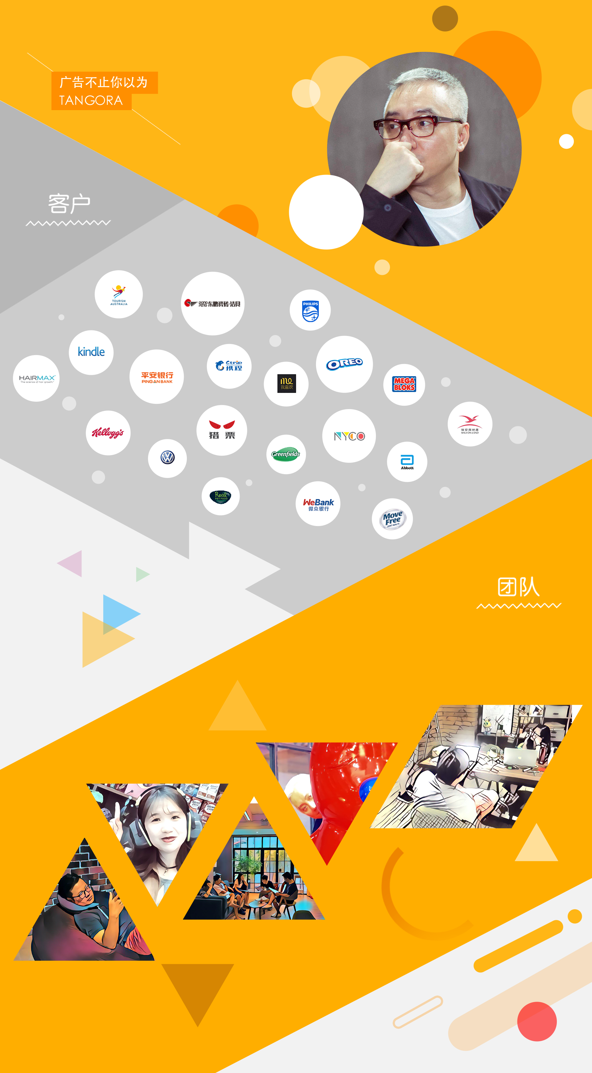 公司英文名“Tangora”取自“Tang”和“Agora”的合并。“Tang”即指公司創(chuàng)始人唐力山先生,他來(lái)自香港,在營(yíng)銷(xiāo)行業(yè)傾力21載,這么多年他只專(zhuān)心做好一件事:打造品牌價(jià)值。為此他不斷孜孜探求如何不拘一格,創(chuàng)造不一樣的消費(fèi)體驗(yàn)。他曾在北京Saatchi,北京Grey,上海DDB和上海FCB任公司核心職位,并任2017和2018大中華區(qū)艾菲獎(jiǎng)初審和終審的評(píng)審。